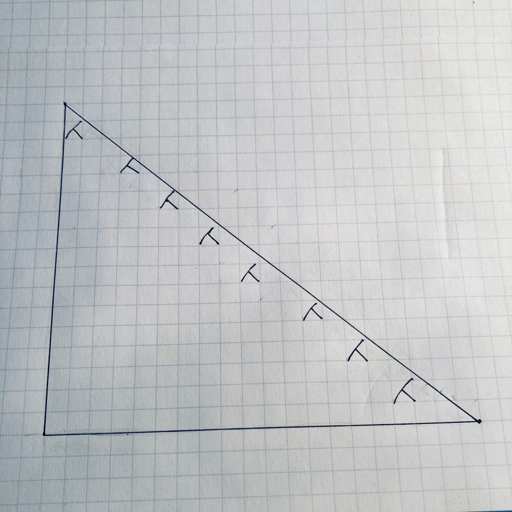 Cast on the total number of stitches to achieve the size pocket you want. On the next right-side row, K2tog at the right edge of the triangle (for a left triangle SSK at the left edge). Work the wrong side row even. Continue alternating these rows until one stitch remains.